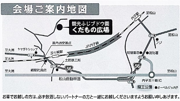イベント会場は「内子ワイナリー」(大洲市喜多山112番地)です。