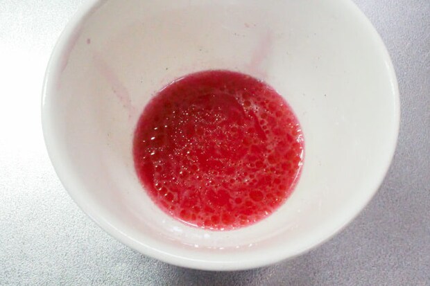 混ぜ合わせると、ローズ色の鮮やかなマリネ液に♪黒ぶどうを使う理由はきっと、この色を出すためなのでしょうね。