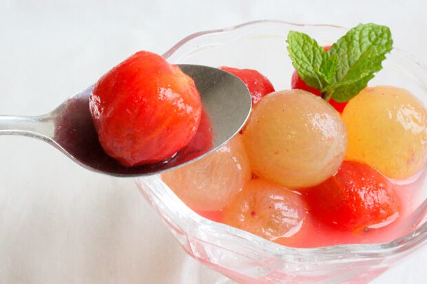 ぶどうとミニトマトの皮を剥くのは面倒に感じるかもしれませんが、湯むきすればツルッと気持ちよく剥けます。ストレスを感じることなく、作れるはずですよ。