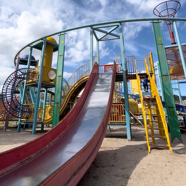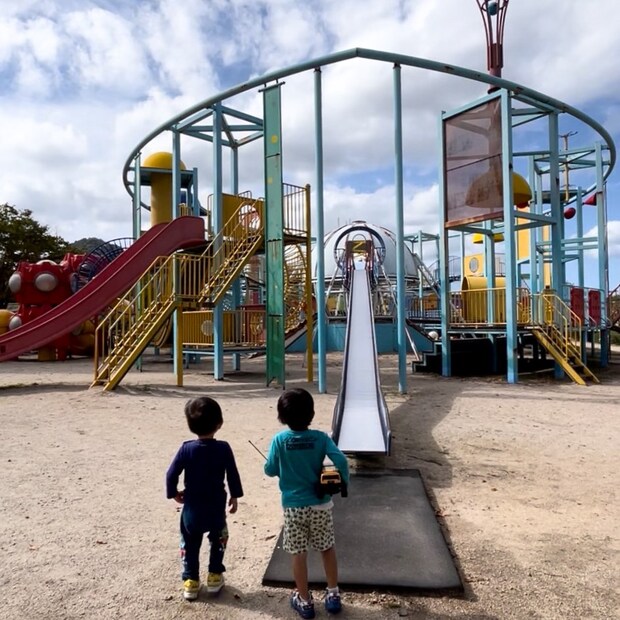 ここにある公園には、360度ぐるりとつながった円形の巨大遊具があり、2025年にリニューアルし、さらに遊びやすくなりました!!