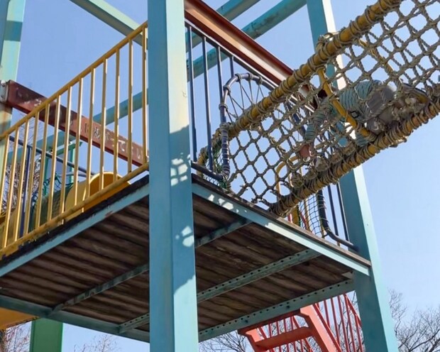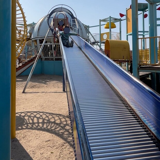 急角度のすべり台や、なだらかなローラーすべり台があったり、ちょっと難易度高めのクライミングの斜面もあります。