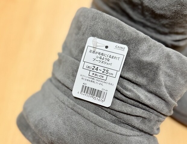 足首まわりに使われている毛布生地は、カインズの人気アイテム「MIZUKUMO毛布」と同じ生地なのだそう。