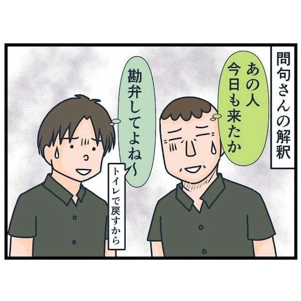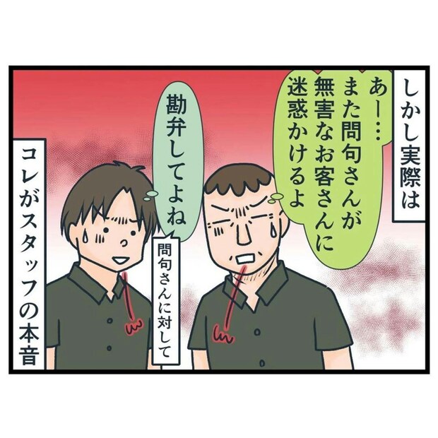 しかし、問句さんのクレームは「一方的な思い込み」から来ていると感じている店員たちは、問句さんの言動に困っているようです。