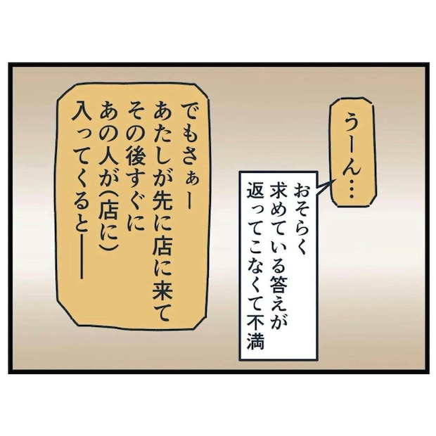問句さんも自分で相手に声を掛けて自分の中のモヤモヤを晴らすつもりはないようで、お店として相談を受けても何もできないですよね。もし自分のルールを相手に当てはめようと躍起になってしまう時は、まず自分のルールがおかしくないか、自身で振り返るようにしたいですね。