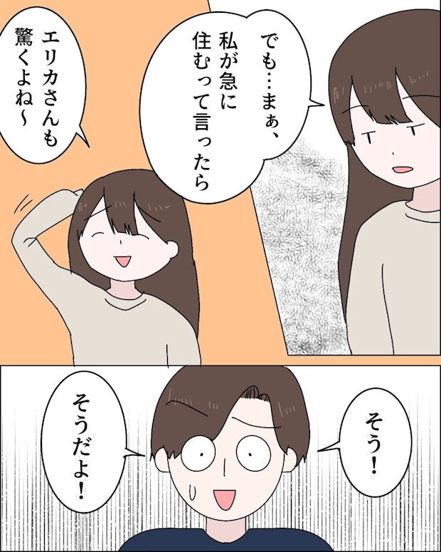 そして、「でも・・まぁ、私が急に住むて言ったら、エリカさんも驚くよね~」ジュリの言葉に、「そう!そうだよ!」とホッとしたように言う夫。