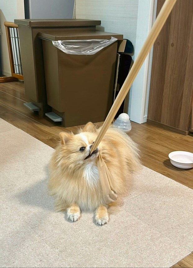 ふわふわとした毛とくりっとした目が印象的な、ポメラニアンのピカルディくん。飼い主さんが朝におろしたばかりのストッキングをくわえて「ビヨーン」と引っ張ってしまいました。このあとのストッキングは無事とは思えませんね…。まだ新しいストッキングなだけに、飼い主さんはショックだったのではないでしょうか。