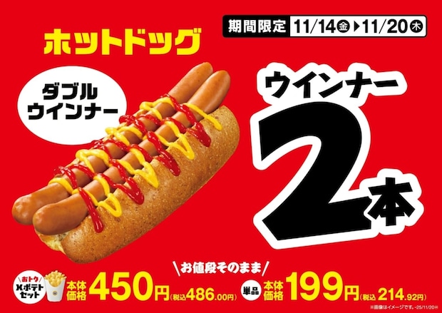 通常の1.5倍量のXフライドポテトや、ウインナーを2本入れたホットドッグ(ダブルウインナー)を販売するほか、対象のおにぎり・唐揚弁当・納豆巻・海鮮丼・焼きそば・コールスローなどが50%増量、対象のサンドイッチ1層増、対象の菓子パン・ダブルクリームシューが30%増量など、全20品の増量商品を取りそろえる。