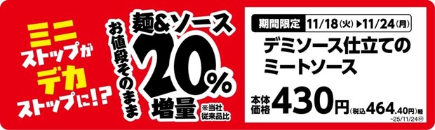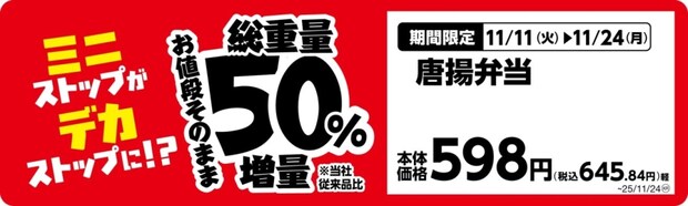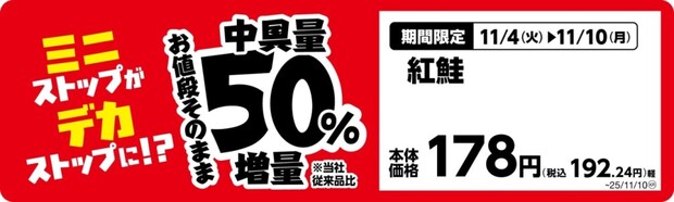 ミニストップは、『ミニストップがデカストップに!?』と題して、11月4日から順次、値段はそのままに増量した商品を発売している。