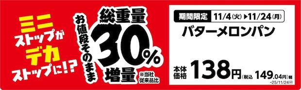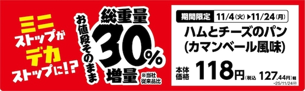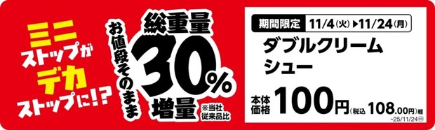 〈対象の菓子パン・ダブルクリームシューは30%増量〉