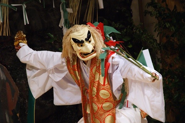 「高千穂の夜神楽」は、昭和53(1978)年に国の重要無形民俗文化財に指定された。夜神楽とは、里ごとに氏神様を神楽宿と呼ばれる民家や公民館に招き、夜を徹して三十三番の神楽を奉納する、昔から受け継がれてきた神事だ。各集落の夜神楽では、天照大神をはじめ、日本の神話や伝説の中に登場する神々が総出演する。