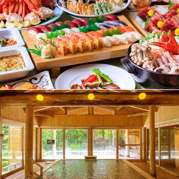 那須高原に立ち、四季折々の美しい自然を間近に感じられるスパリゾート。檜造りの趣ある湯殿や森の中の露天風呂では乳白色の硫黄泉にゆったりと浸かることができる。敷地内に点在する建物には和室から露天風呂付き客室、コテージまでさまざまな客室が備わり、シーンや好みに応じて選べる。夕食のバイキングは「種類豊富でおいしい」と口コミでも評判。シェフがその場で料理を仕上げてくれるライブクッキングでは焼きたてのステーキなどが味わえるほか、那須の野菜や地元の特産物を使った和洋中のメニューが約60種も! どれも食欲をそそり、目移りすること間違いなし。年明け13,000円台で泊まれる日もあるので、気軽に出かけてみて。