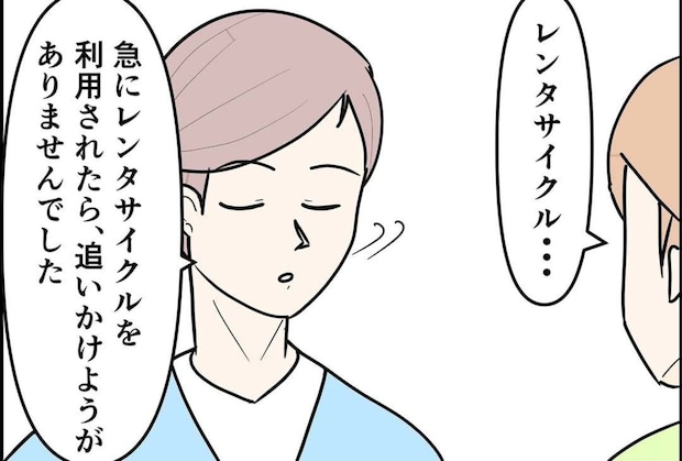 後をついてきていることに気づいたのか、佳奈さんに浮気を勘付かれたことで警戒しているのか、邦夫はレンタサイクルで逃げるように行ってしまいました。