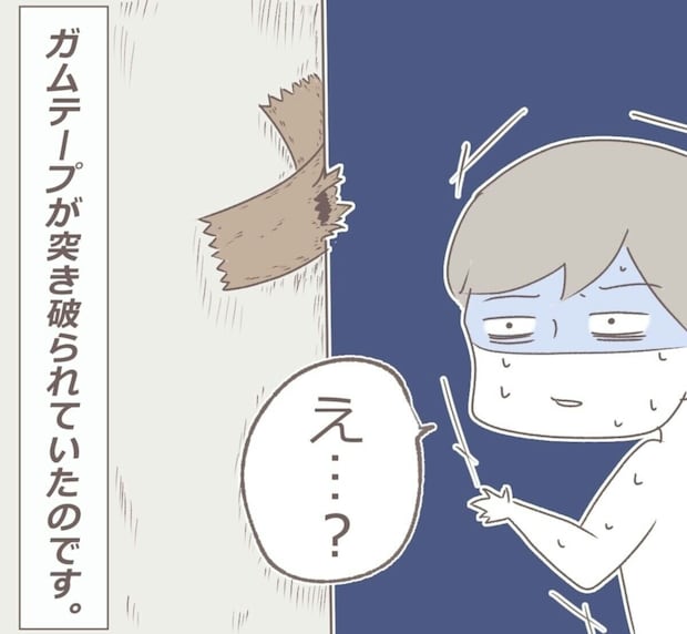 ふさいだはずの穴が勝手に突き破れていた…これはどういうことを意味するか、ちなきちさんはわかっていたと思います。「ふさいだはずの穴を誰かが意図的に突き破った」ということ。それがわかった瞬間は怖くて仕方なかったでしょう。