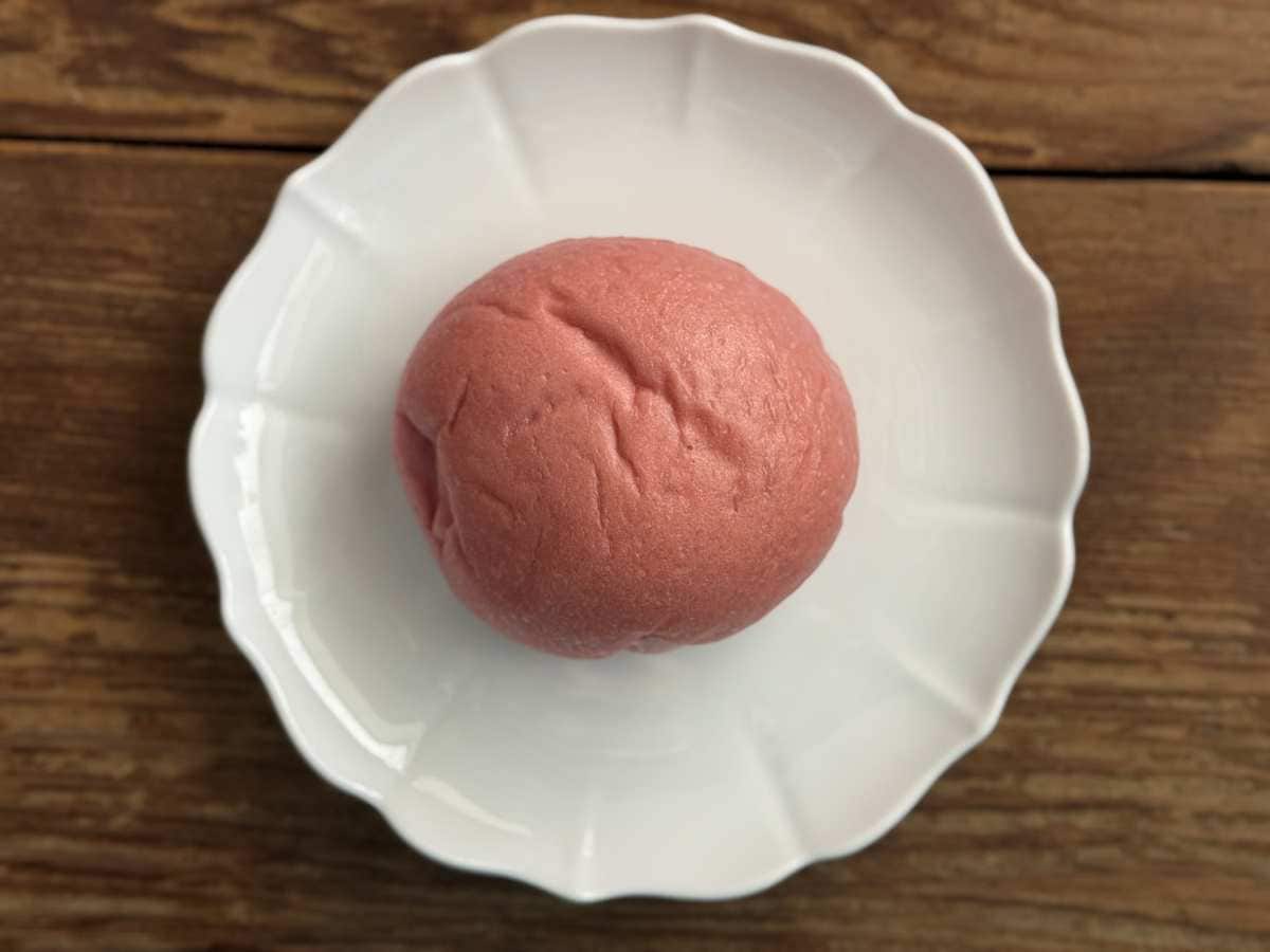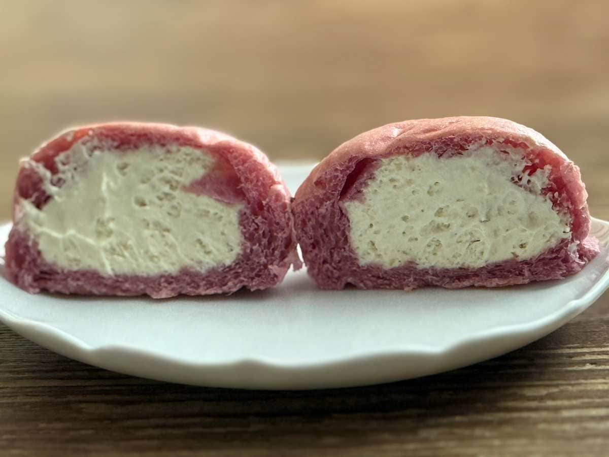 鮮やかな紫色のパン生地は持った感覚は「ふんわり」より「もっちり」としているなという感想。
