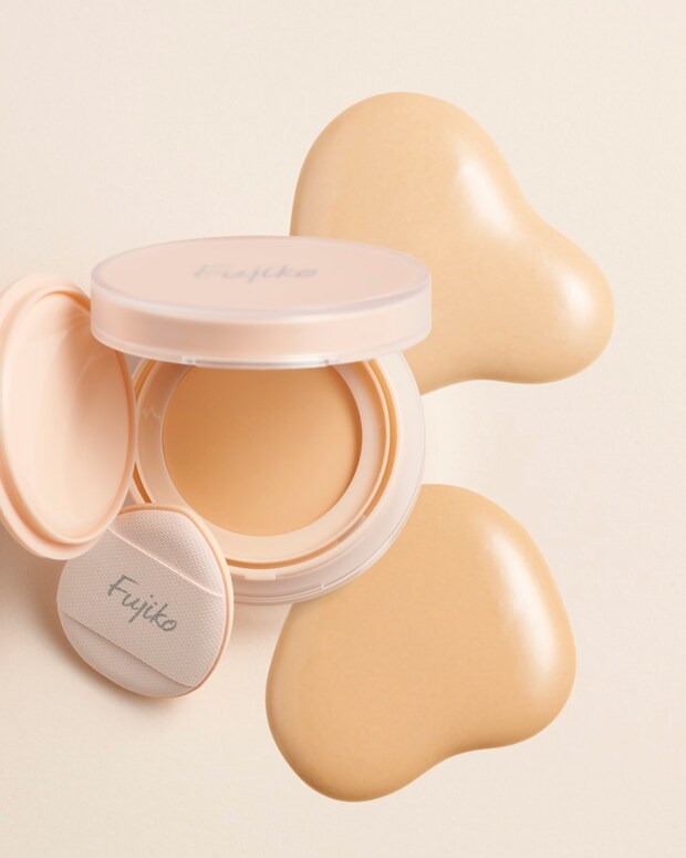 「こういうのって『ビジュアルはいいけど、中身はね……』みたいなことも多いんですけど、これは全く別物。ファンデお直し時に境目なくなじむようにこだわった、水分量45%のみずみずしいクリーム処方。12種のスキンケア成分が角層に浸透するそうで、今の季節の乾燥しやすい日中の保湿ケアに最高なんです」。パフは指1本にジャストフィットするので、小鼻、目元、口元などお直ししたい場所にピンポイントで塗り直し可能とのこと。素晴らしい。「40代のお姉さまたちのくすみや色ムラのカバーもしやすいはず」とMちゃんのオススメのままに使ってみたのですが、これ、メイン使いできる大きいサイズが欲しいと思ってしまうほどファンデがよき! 薄づきながらカバー力もあり、密着力がすごくてヨレにくいんです。保湿力もあって、ツヤもほどよく、テラテラと下品な感じになりません。これはお直しだけじゃなくて、朝、最初のメイクに使いたいという願望がムクムクと。むしろ頑張ってこの小さなパフで全顔塗ってみましたが……さすがに時間がかかるのでFujiko様、いつか普通サイズもそっと出してください!