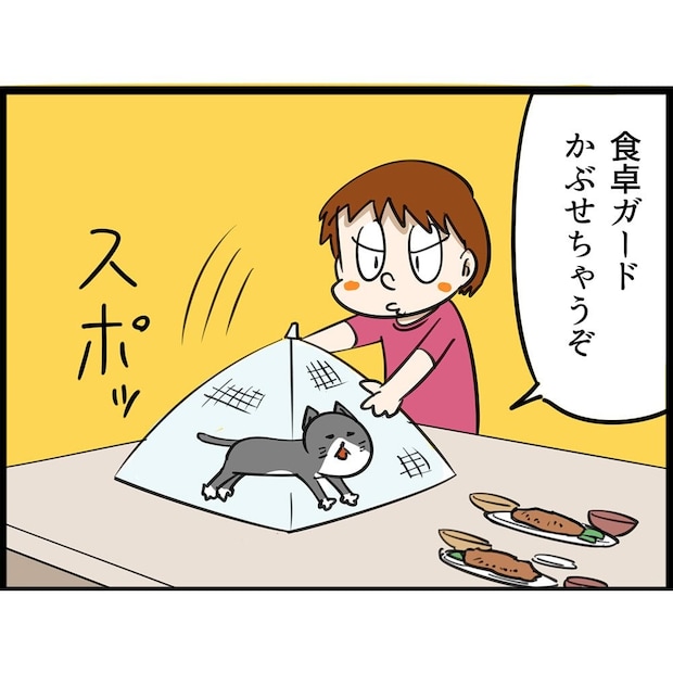 しょっちゅう食事を並べたテーブルに上がってくる愛猫。ダメと言ってもきかないので、見かねた飼い主の女性は…という内容で、読者からは「これはもう許すしかない(笑)」「かわいいからOK!」などの声が上がっています。