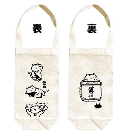 「たてにゃん ボトルバッグ」は、720mlサイズのお酒が1本入る丈夫なキャンバス生地のバッグ。豪華な両面プリントタイプで、持ち運びやプレゼントに大活躍だ。