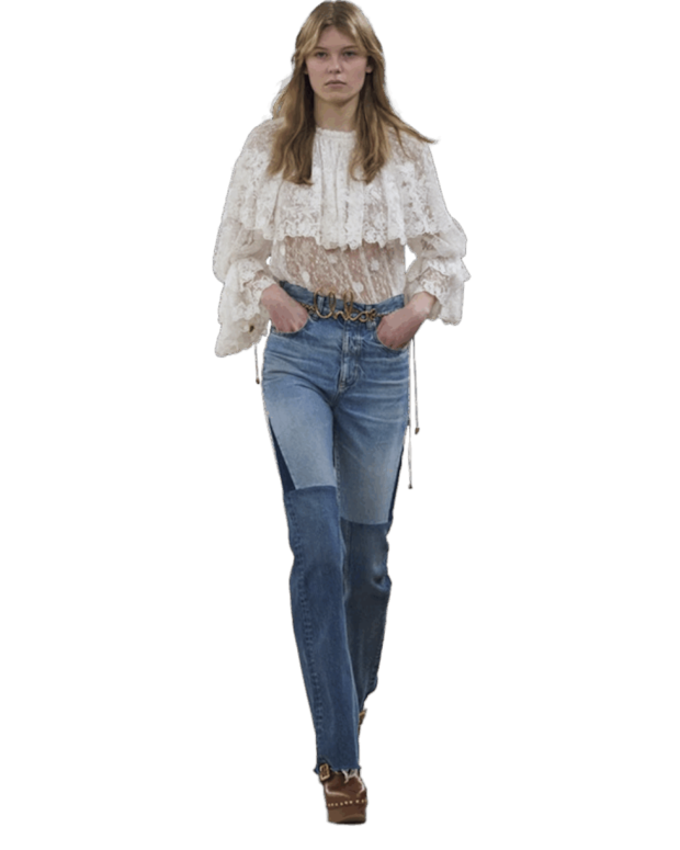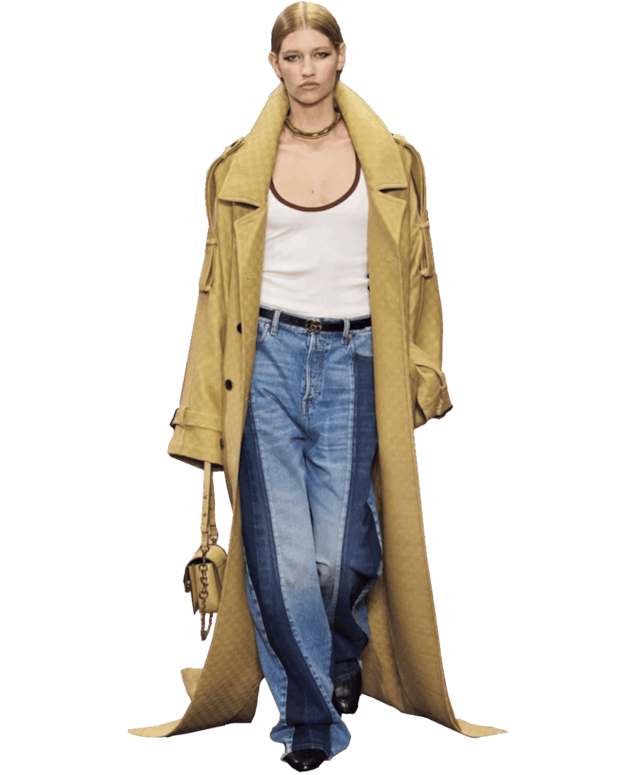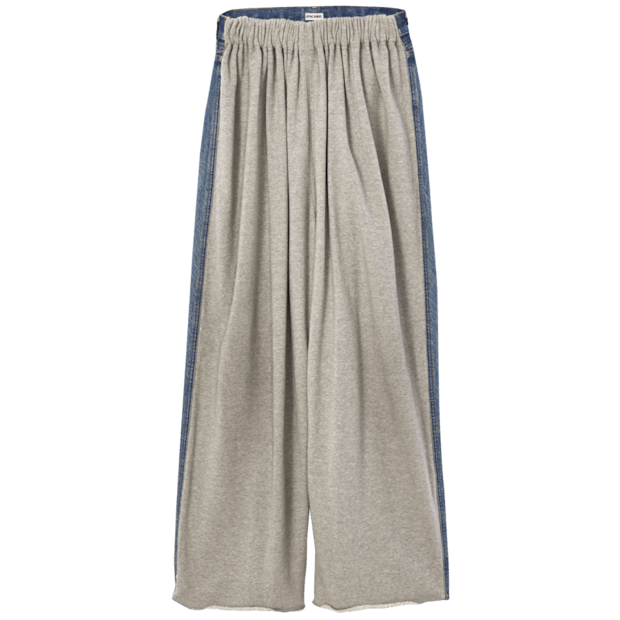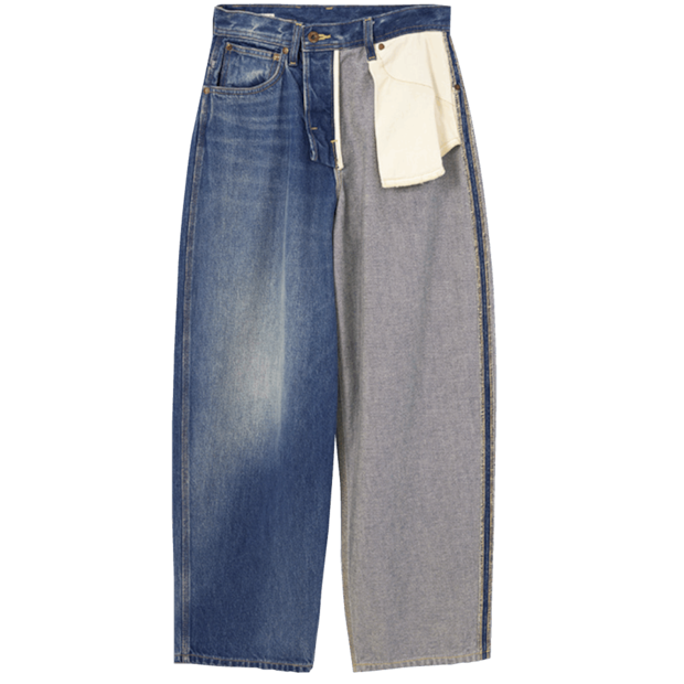 メゾンブランドのコレクションでも注目を浴びた、異なるカラーや異素材を組み合わせたデザイン性の高いデニムパンツ。存在感のある1本は他をシンプルにまとめて主役として引き立てたい。