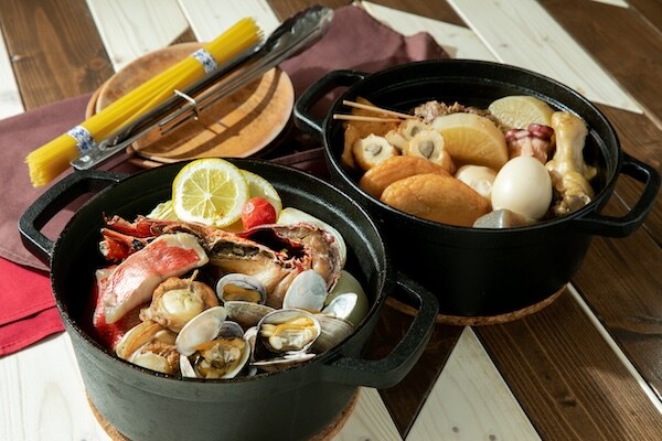 伊勢海老を贅沢に使ったブイヤベースや、旬の泉州野菜が楽しめる鍋など、寒い季節にこそ味わいたい、旨みと温もりが広がるメニューを用意。コタツでぬくぬくとBBQ&鍋を楽しめる。