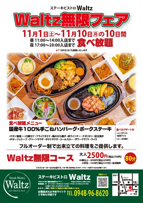 The post 【飯塚】ステーキビストロWaltzで食べ放題が開催中!期間は11月1日(土)~11月10日(月)の10日間 first appeared on 筑豊情報マガジンWING.