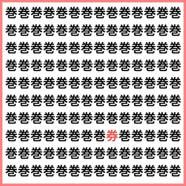 たくさんの「巻」の中に、1文字だけ違う漢字が混ざっています。
