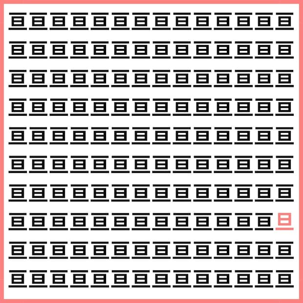 たくさんの「亘」の中に、1文字だけ違う漢字が混ざっています。