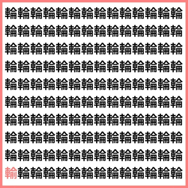 たくさんの「輪」の中に、1文字だけ違う漢字が混ざっています。