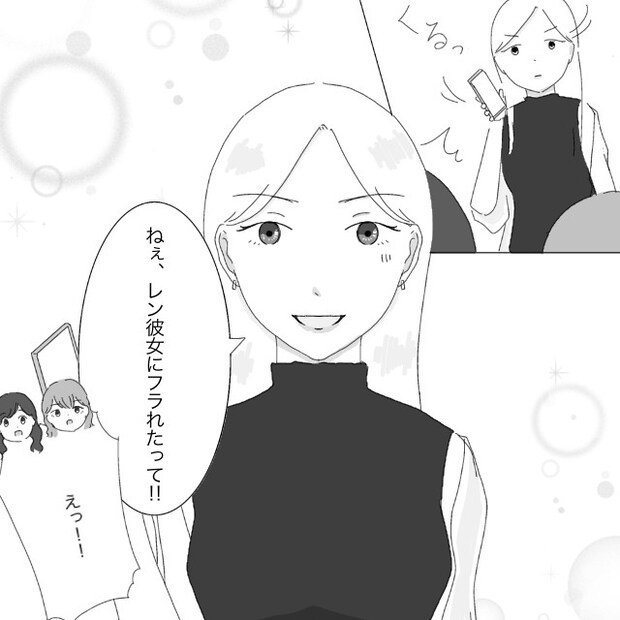 アツシくんと通話を終えたカナコは、私たちに向き直ると、嬉しそうな顔で「ねぇ、レン彼女にフラれたって!」と言いました。