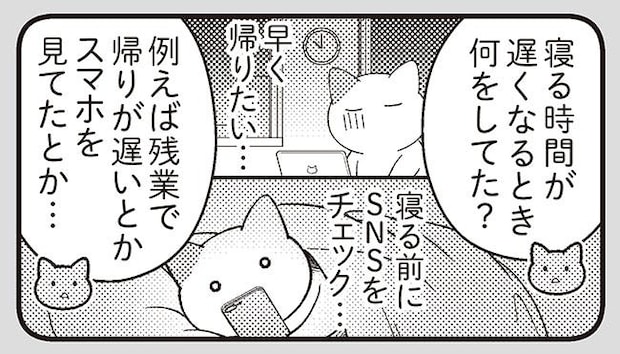 寝る時間が不規則になってしまう人は、睡眠障害で眠れない…などでないなら、本当に不規則なのは「起きている時間の行動」のほうです。まずは、そちらを見直すのがいいと思います。