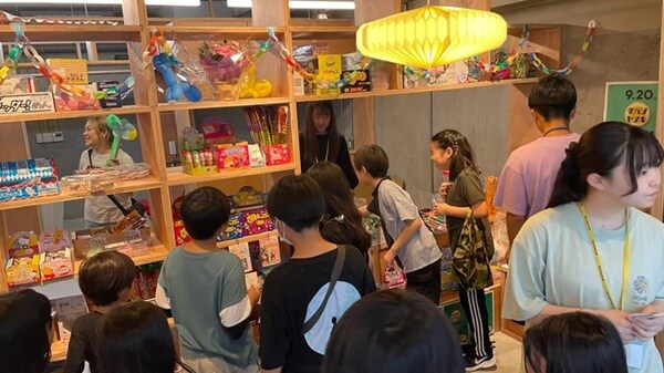 地域の駄菓子屋のレジを手伝うこどもたち(駄可笑屋敷プロジェクトの過去開催イベントより)