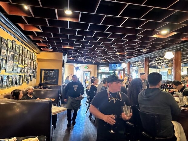 メインエントランスを入ると左手にバーカウンター、右手にはソファー席が数個並び、壁一面には著名人のサインが所狭しと飾られています。