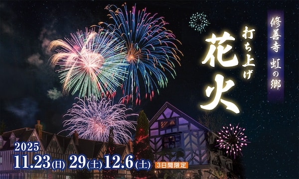 11月23日(日)、29日(土)、12月6日(土)にはもみじを彩る約1,000発の華やかな秋の打ち上げ花火を各日19:30〜開催。