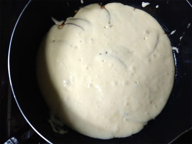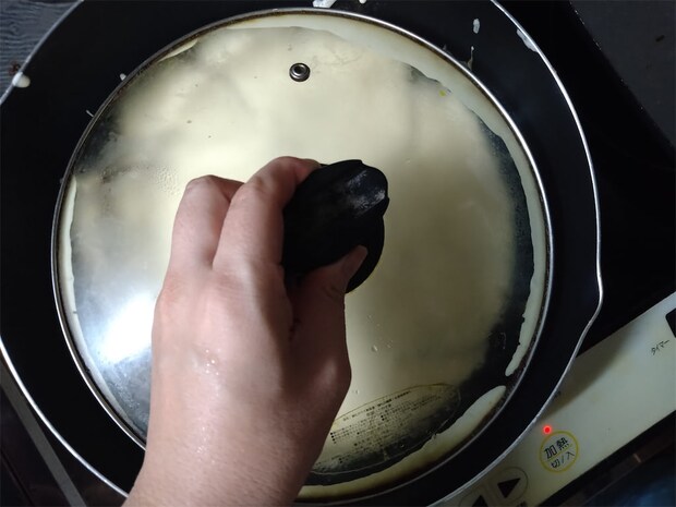4. 3の上に生地をすべて流し込み、弱火でフタをして蒸し焼きにする。