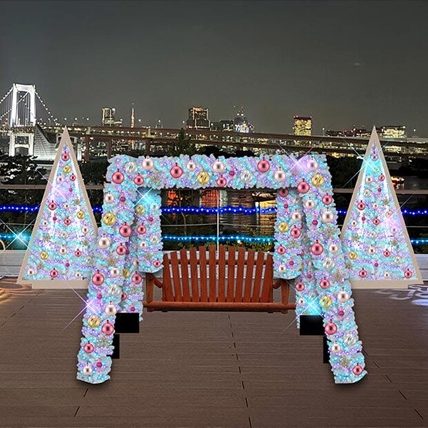 同じくシーサイドデッキには、冬季限定のオリジナルブランコも登場。レインボーブリッジを背景に記念撮影ができるそう。きらびやかで写真映えする1枚が撮れるはず!