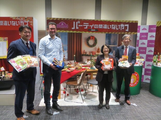 イオンは、今年年末のクリスマスシーズン、物価高で節約志向が高まる中にあって、1人2,000円以下でも本格的に、かつ簡便性も高く楽しめるパーティメニューを提案する。6日、千葉・幕張のイオンモール幕張新都心で「イオン トップバリュ パーティの間違いないやつ2025発表会」を開催し、イオントップバリュの土谷美津子社長らがプライベートブランド(PB)「トップバリュ」を中心とした年末年始のパーティシーズンに向けた商品施策について説明した。