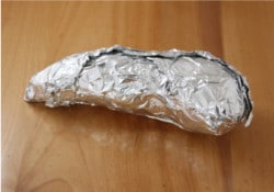 2. キッチンペーパーで包んで水で濡らし、ラップでくるみ