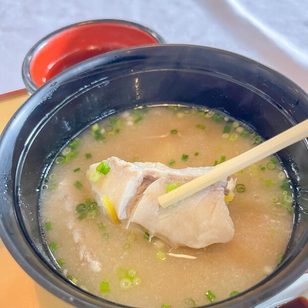 あら汁には大きめの魚の身が贅沢に入っています。コクがあって味わい深い美味しさ。