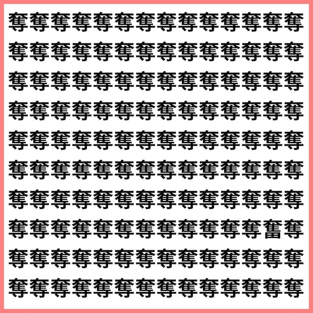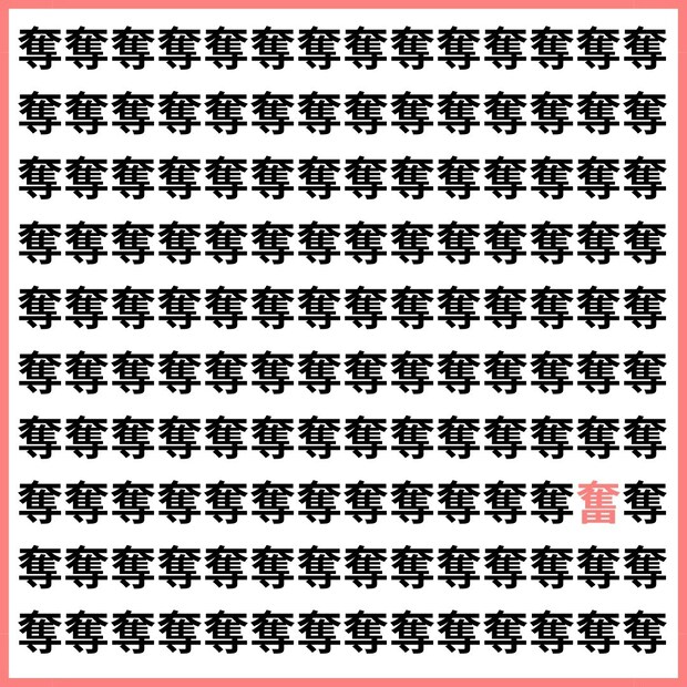たくさんの「奪」の中に、1文字だけ違う漢字が混ざっています。