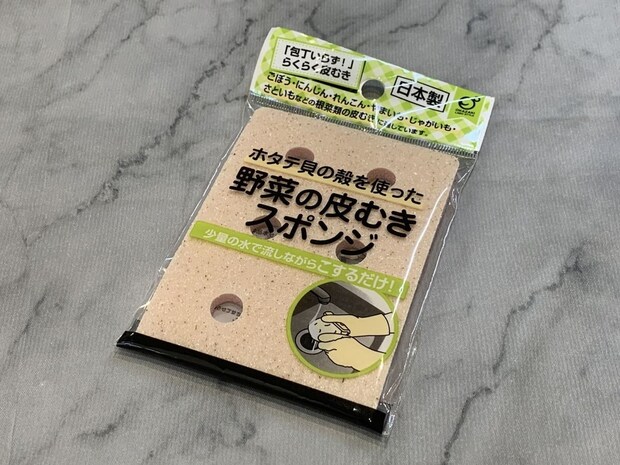 ピーラーや包丁いらずで野菜の皮をむける「野菜の皮むきスポンジ」です。