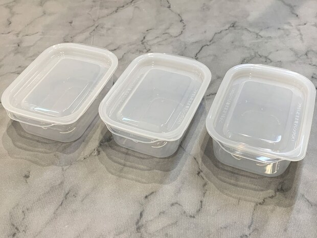我が家ではご飯を冷凍保存する用に、小サイズ3個入りの容器を購入しました!