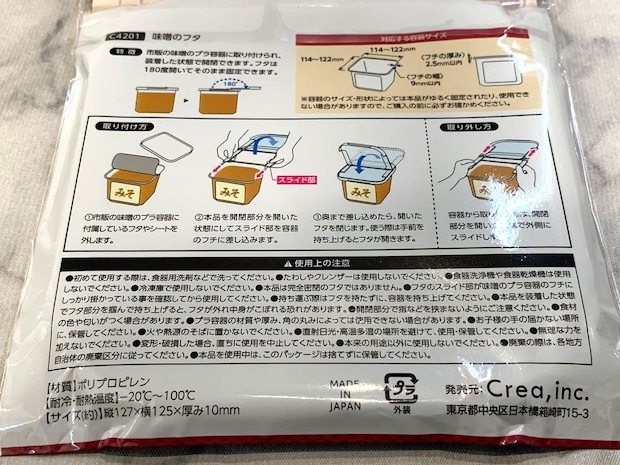 対応容器サイズ:味噌容器114~122mm、フチの厚み2.5mm以内、フチの幅9mm以内