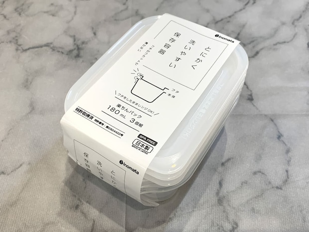 一方、こちらの「とにかく洗いやすい保存容器」は蓋と容器だけで密閉できるため、パーツが少なく洗う手間が非常に少ないです!