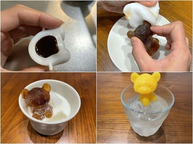凍った後、シリコンを外せばクマの形の氷・シャーベットが完成します!