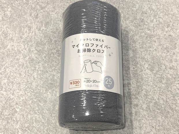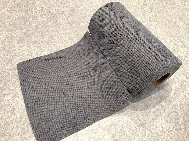吸水性と汚れを絡め取る力に優れた「マイクロファイバーお掃除クロス」。1枚約13円と高コスパで、ロール状から1枚ずつちぎって使える利便性が魅力です