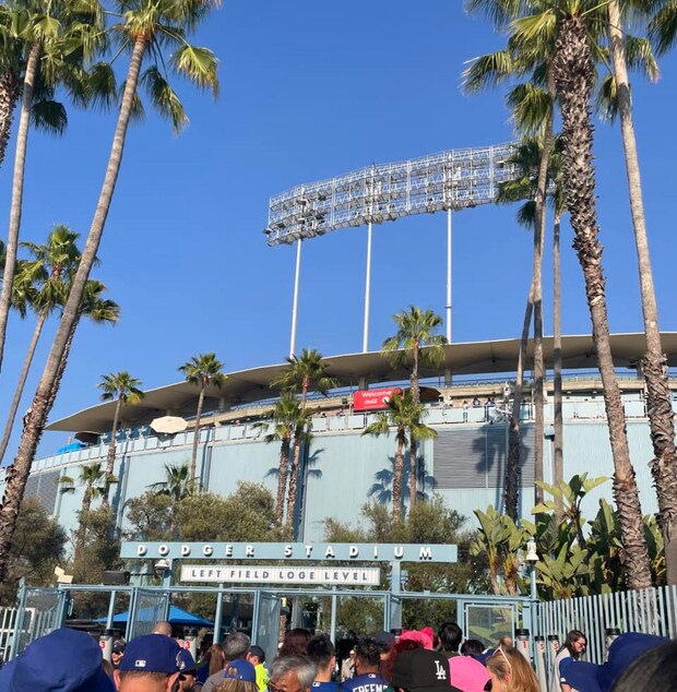 澄んだ青空がL.A.らしい! ドジャーススタジアムのパーキング側のエントランス