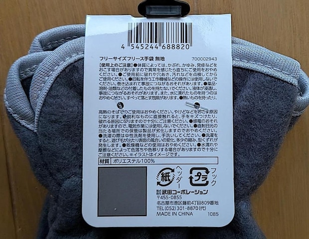 2つ目は、冬の衣料品の素材として、すっかり定番となったフリース素材の手袋です。