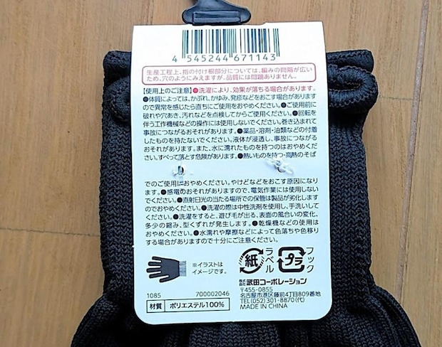 タッチパネル対応の指先の部分に金属繊維が使用されているので、金属アレルギーの方はご注意ください。