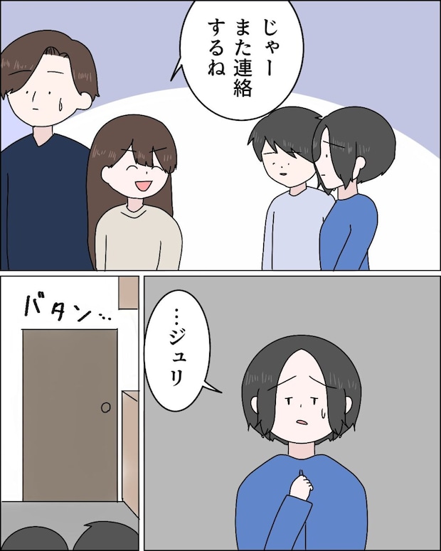 そして荷物をまとめると、「じゃーまた連絡するね」そう言ってケイさんと一緒に出て行くジュリ。私は「・・ジュリ」と呟きました。