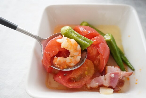 みなさんもぜひ、浅漬けの素を使用した「丸ごとトマトとオクラのアヒージョ風」を、試してみてくださいね。