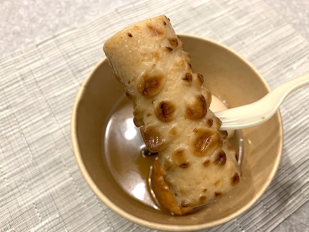 ちくわは外側からも内側の空洞からもダシをたっぷり吸っており、噛むと中からダシが溢れ出てきました♪魚の旨味も詰まっていますし、柔らかくて噛みやすいので子供でも問題なく食べられます!